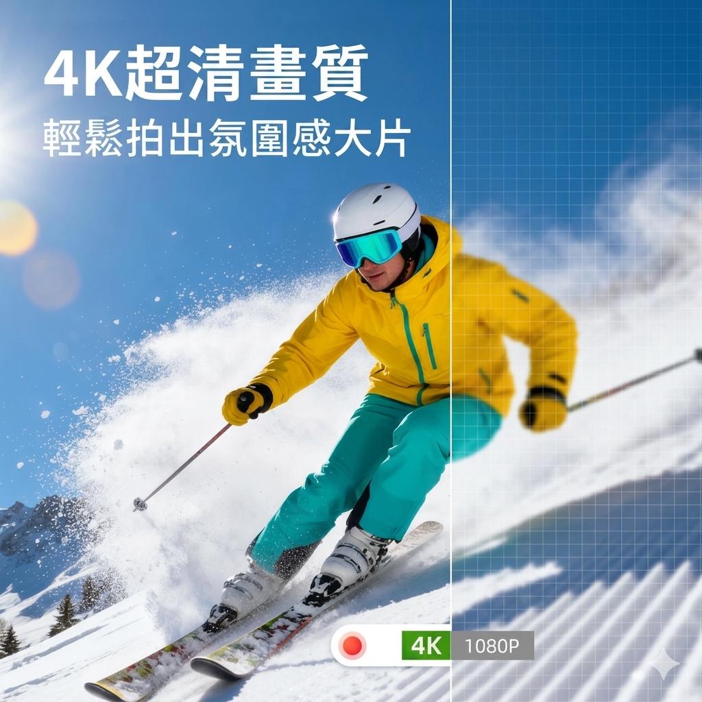 動態影像 :格式:MP4;解析度:4K (30FPS)、2.7K (30FPS)、FHD 1080P (60/30FPS)、HD 720P (60/30FPS)