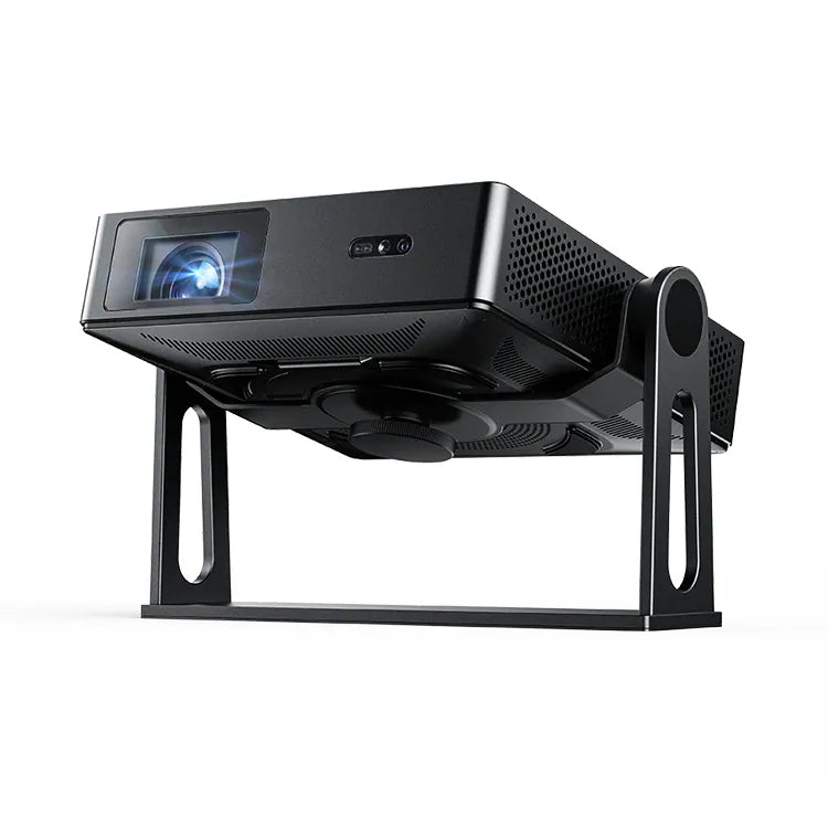 投影機頂部設有電源和選單存取的基本導航按鈕,方便使用者在遙控器不在手邊時進行設定調整。通風口和揚聲器位於機身兩側。底部內建支架和螺紋孔,可用於將投影機安裝在三腳架或天花板上。 NexiGo 還提供選購的桌面雲台支架,可讓您垂直傾斜和旋轉投影機,輕鬆將其投射到天花板、牆壁或任何表面上。